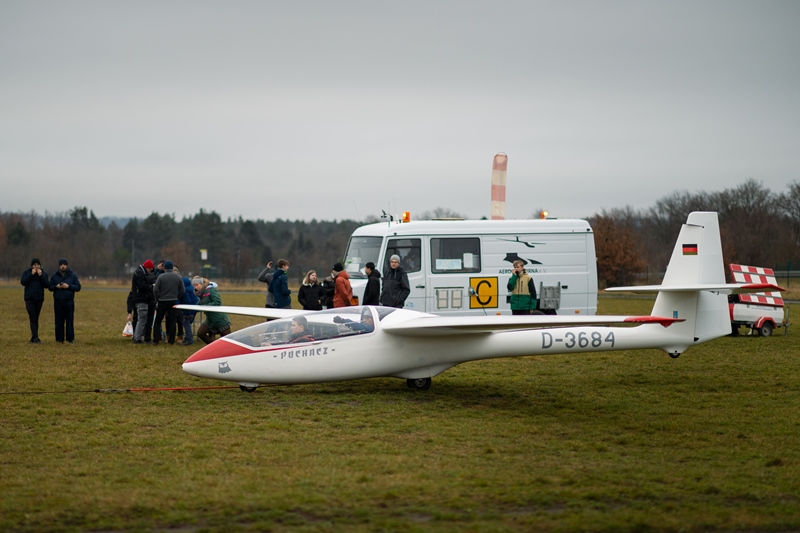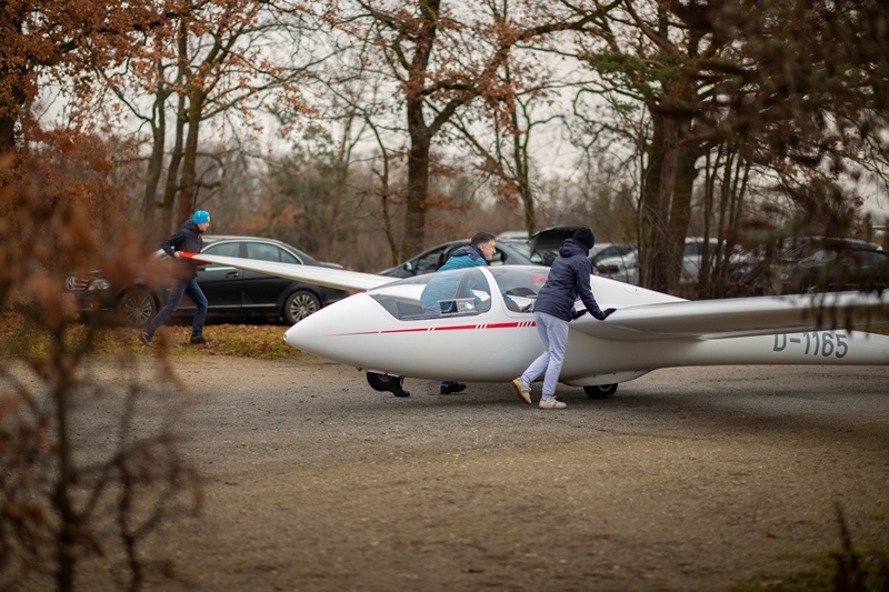Endlich war es wieder soweit, der 13. Dezember war da! Nach 1,5 Monaten Flugpause mal wieder in die Lüfte starten. Das organisierten unsere 13-er, voran Jonas und Konrad, gefolgt von Marvin und Noah. 30 Vereinsmiglieder hatten sich angemeldet, also kein Problem für die Diensteinteilung. Es galt erst einmal zwei von unseren Doppelsitzern aufzurüsten. Das ging ganz gemächlich vonstatten, schließlich war es noch etwas frisch und der Nebel drückte ein wenig den Enthusiasmus.